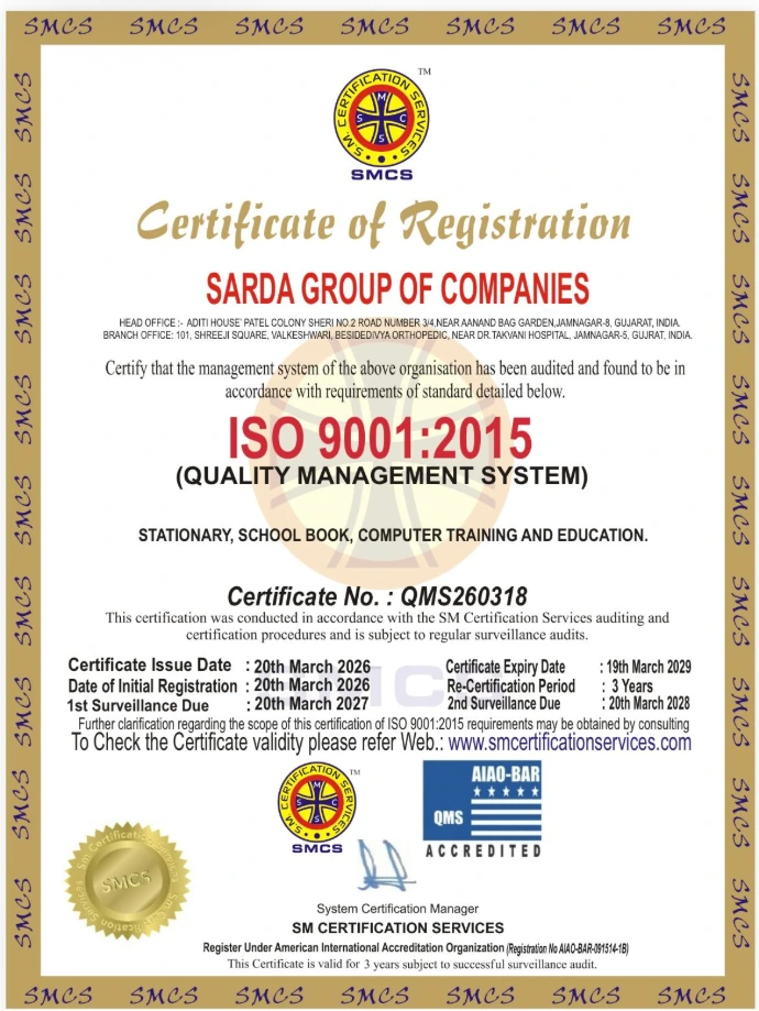 We are proud to be the only ISO 9001:2015 certified stationery shop in the entire Saurashtra region, ensuring the highest standards of quality and service